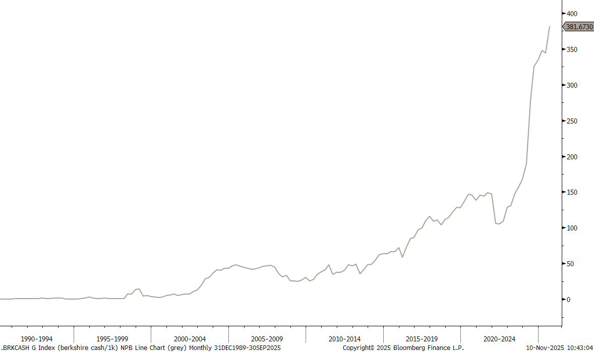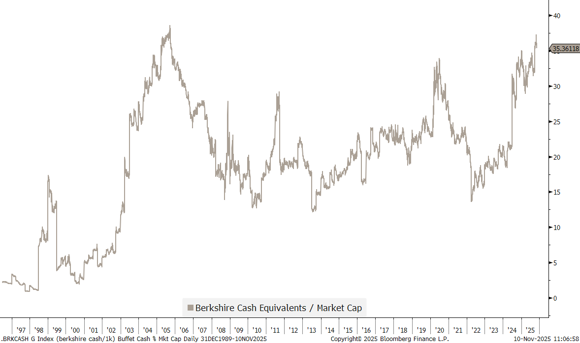 Which in relation to Berkshire Hathaway’s market cap is at about the highest since shortly before the GFC: