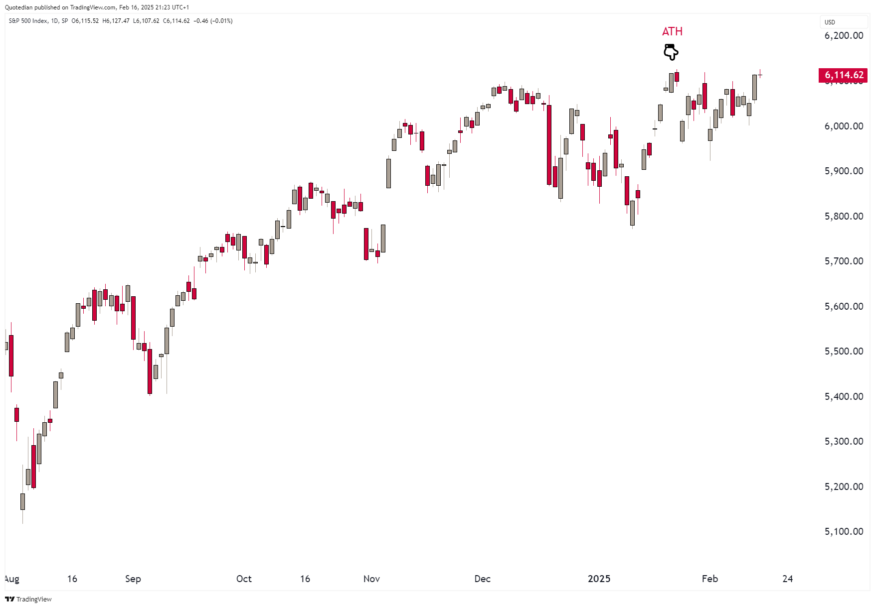 The S&P still has not quite managed to put in a new all-time high (ATH):