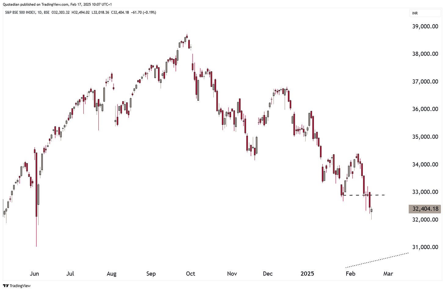 In India, we are observing quite the opposite, where the BSE500 is slowly but sure closing in on our price target of just a tad south of 31k: