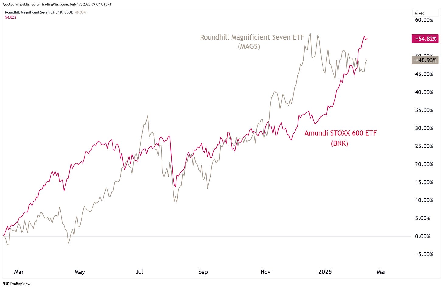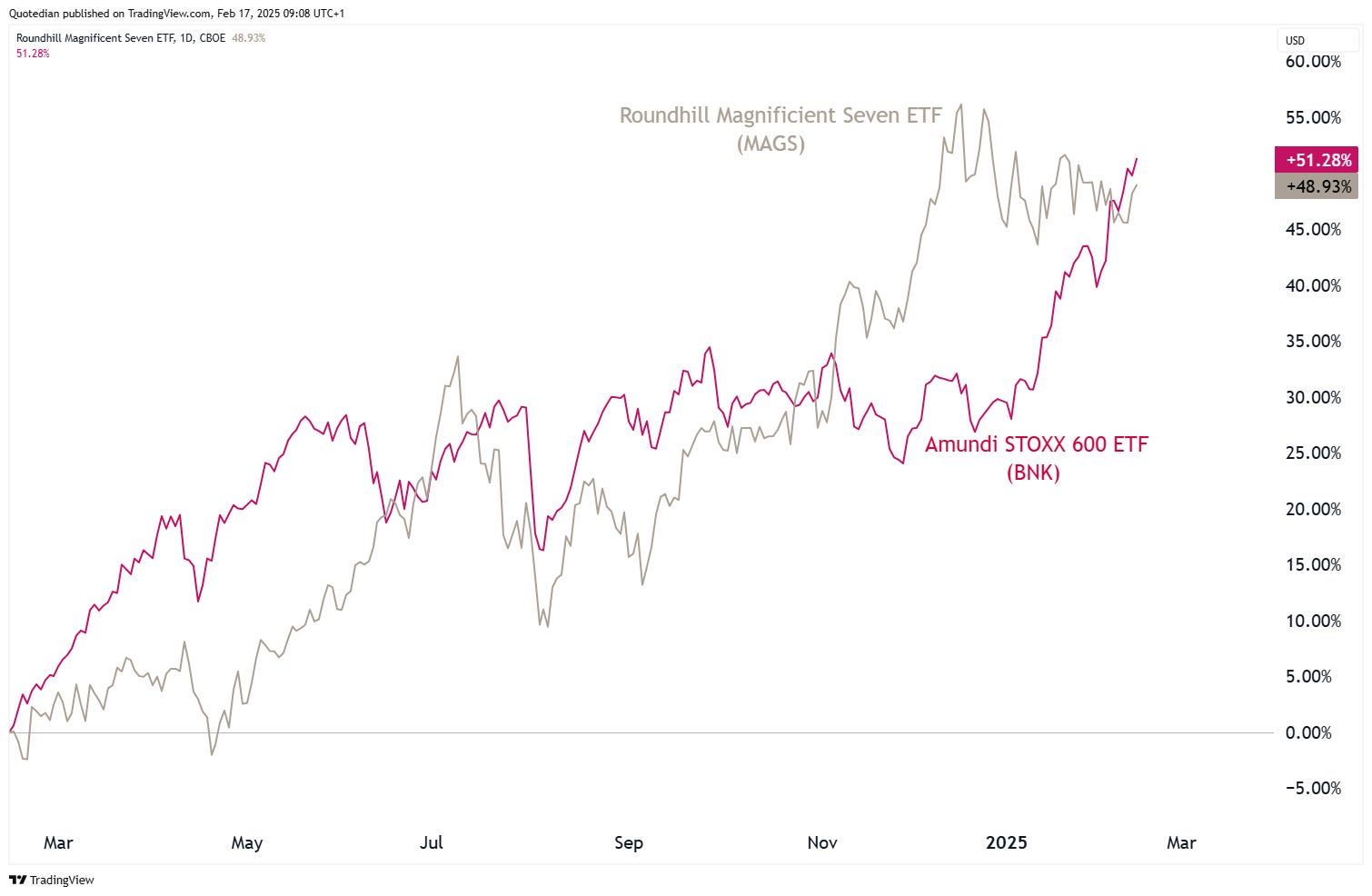 As a matter of fact, did you know that European banks have outperformed the Magnificient Seven over the past year,