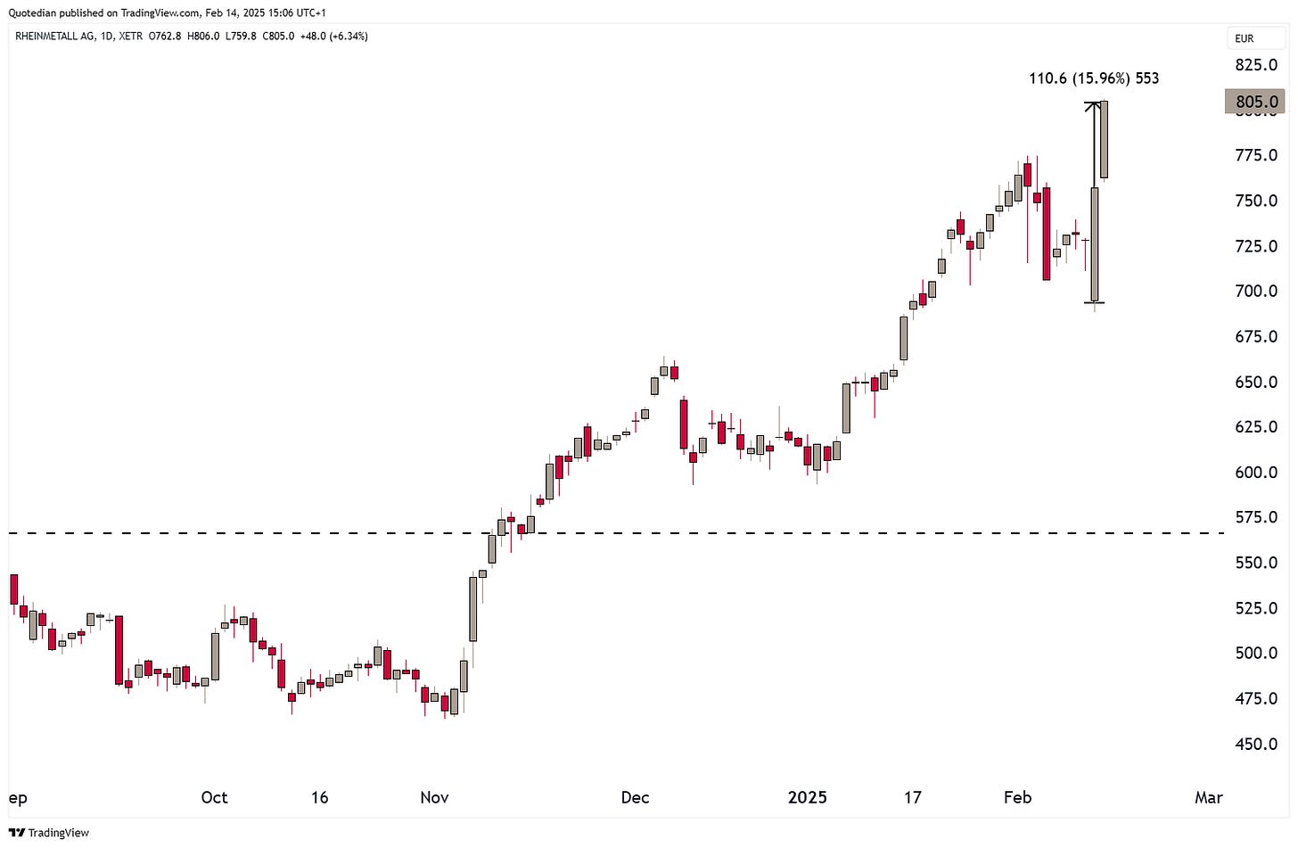 First big down, then big up (16%) since TT. No, don’t take profit, market is saying Europe will need to spend more, not less on defense.