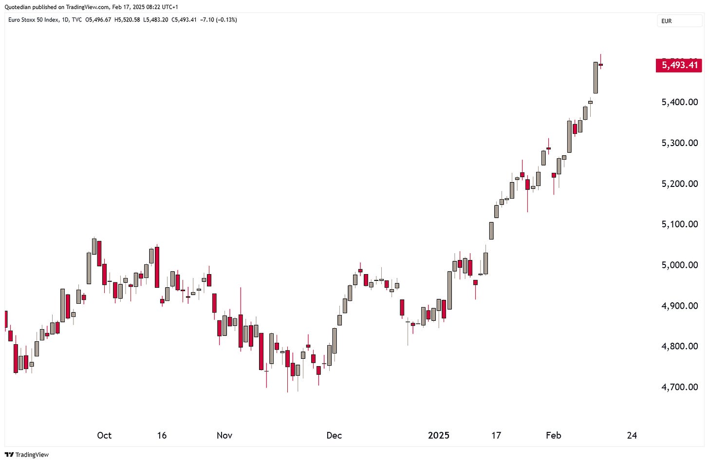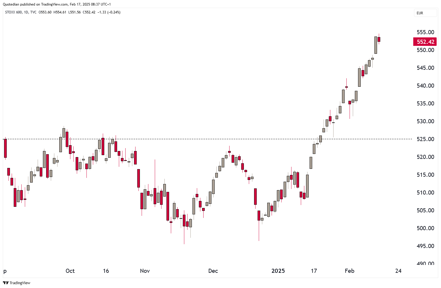 In what is an impressive rally since late December, the broader STOXX 600 Europe index has been locking in record high after record high this year: