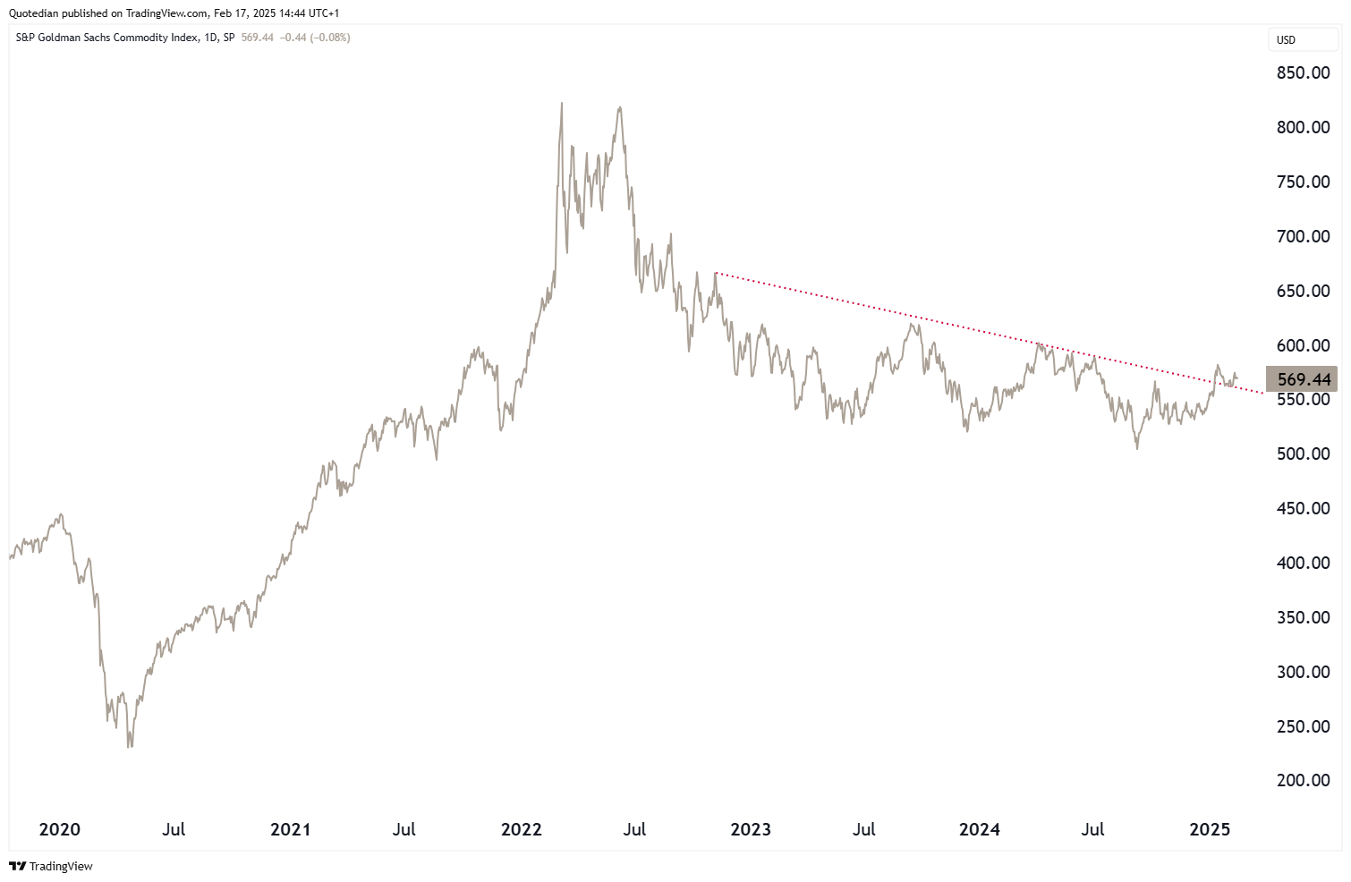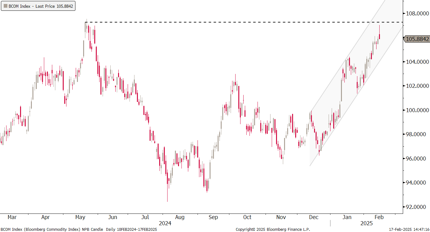 The energy-heavy (54%) S&P GSCI Commodity index is trying to push higher,