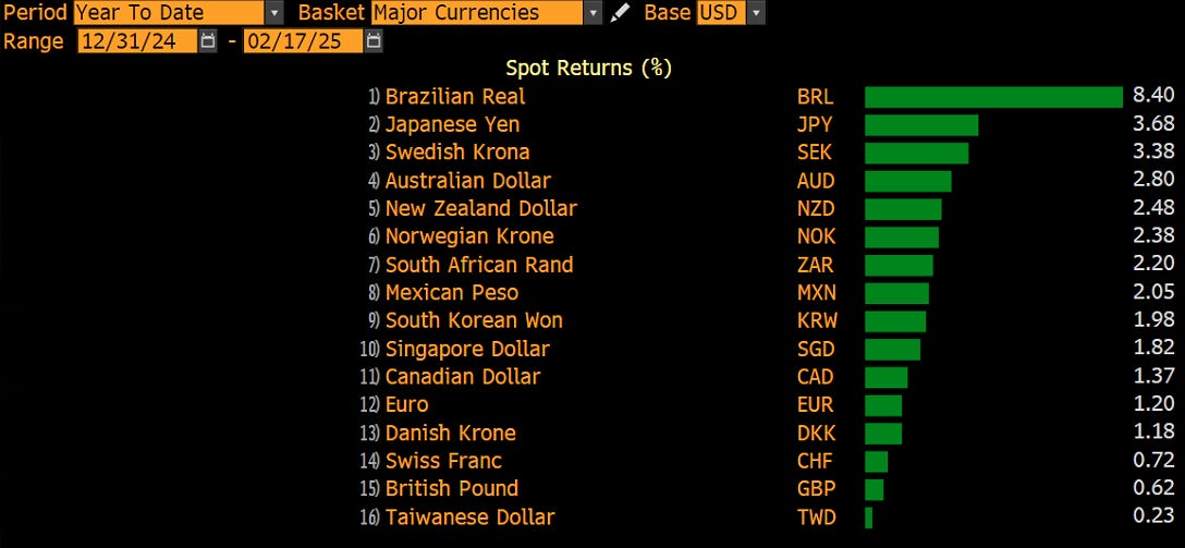 Currencies seem to have been all over the place, but the truth is that most major currencies are now showing small to not so small gains versus the US Dollar: