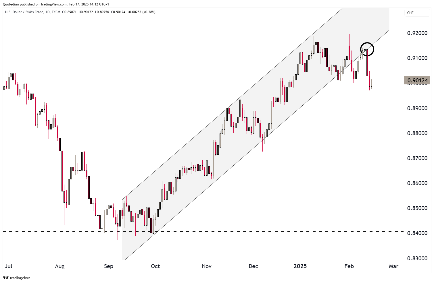 The Dollar held relatively well up versus the Swiss Franc, but now also seems to have picked up on a new short- to intermediate term downtrend: