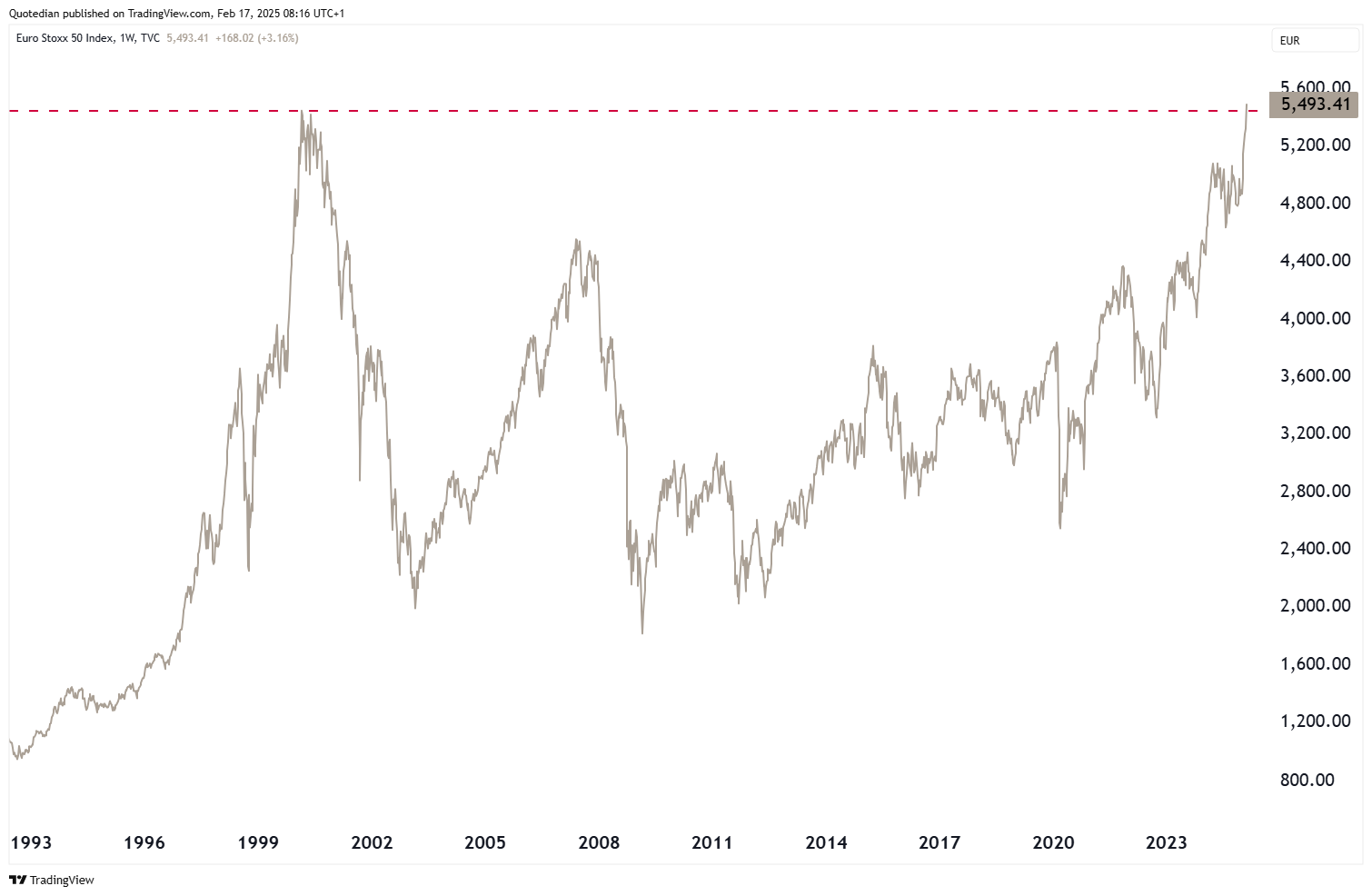 Indeed, did the Euro Stoxx 50 hit its highest level since January 2000 - that’s quite a long time for a base building …