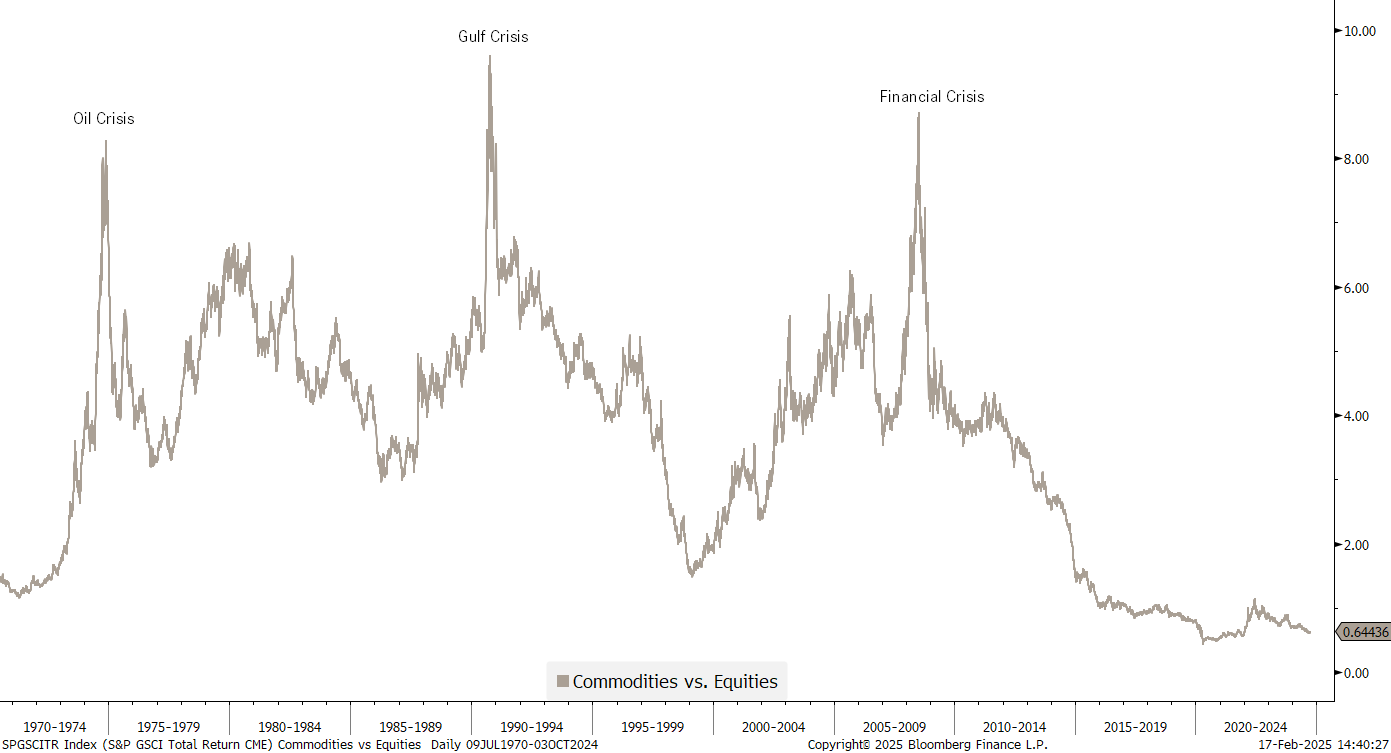 … though on the long-term chart and in relation to equities, it is difficult for commodities to outperform as long as stocks have such a good run: