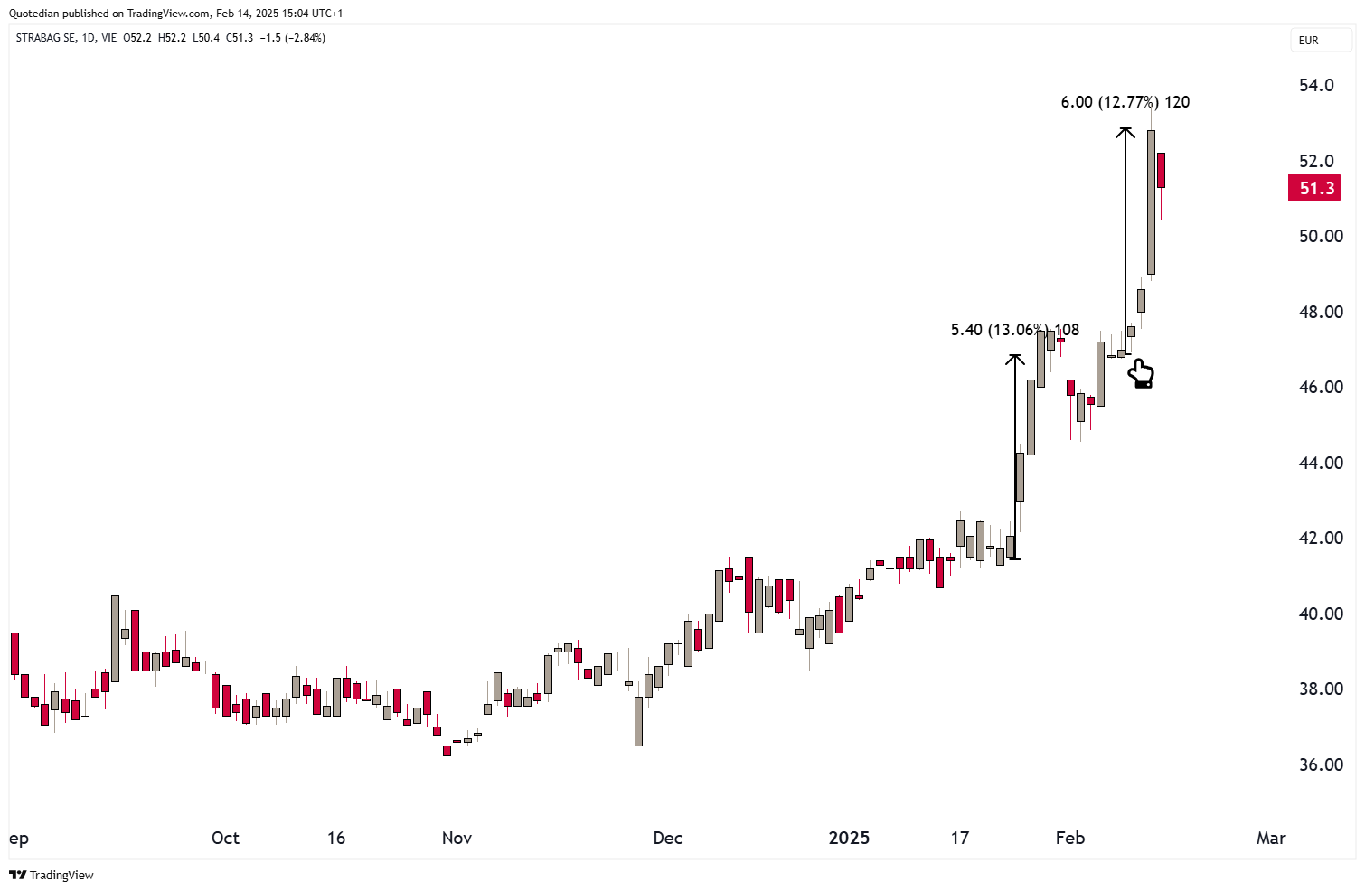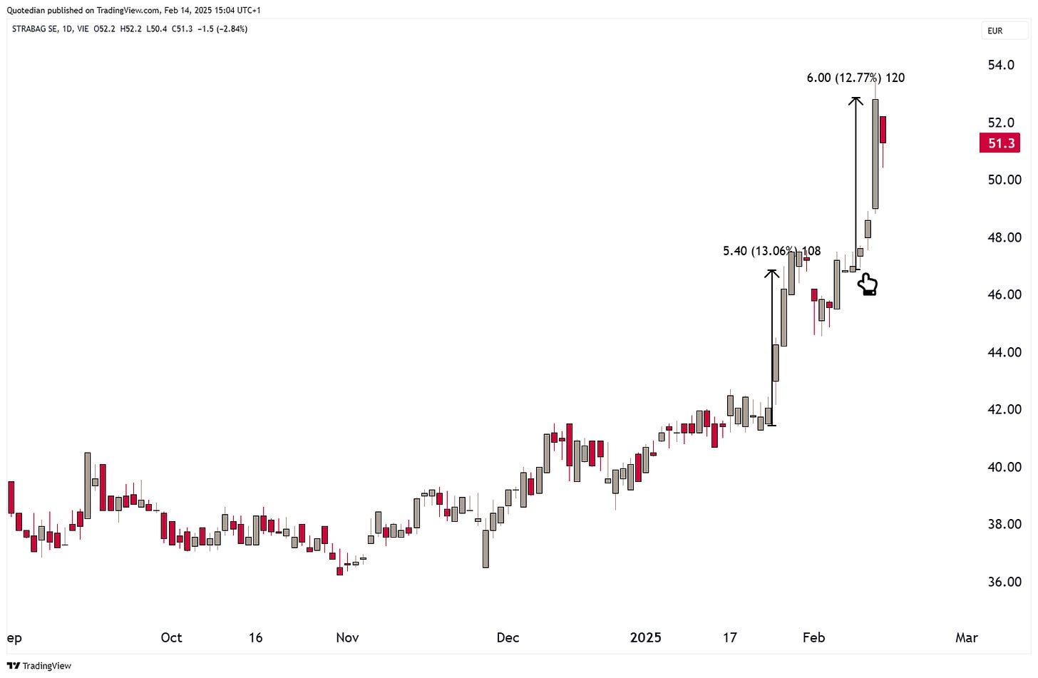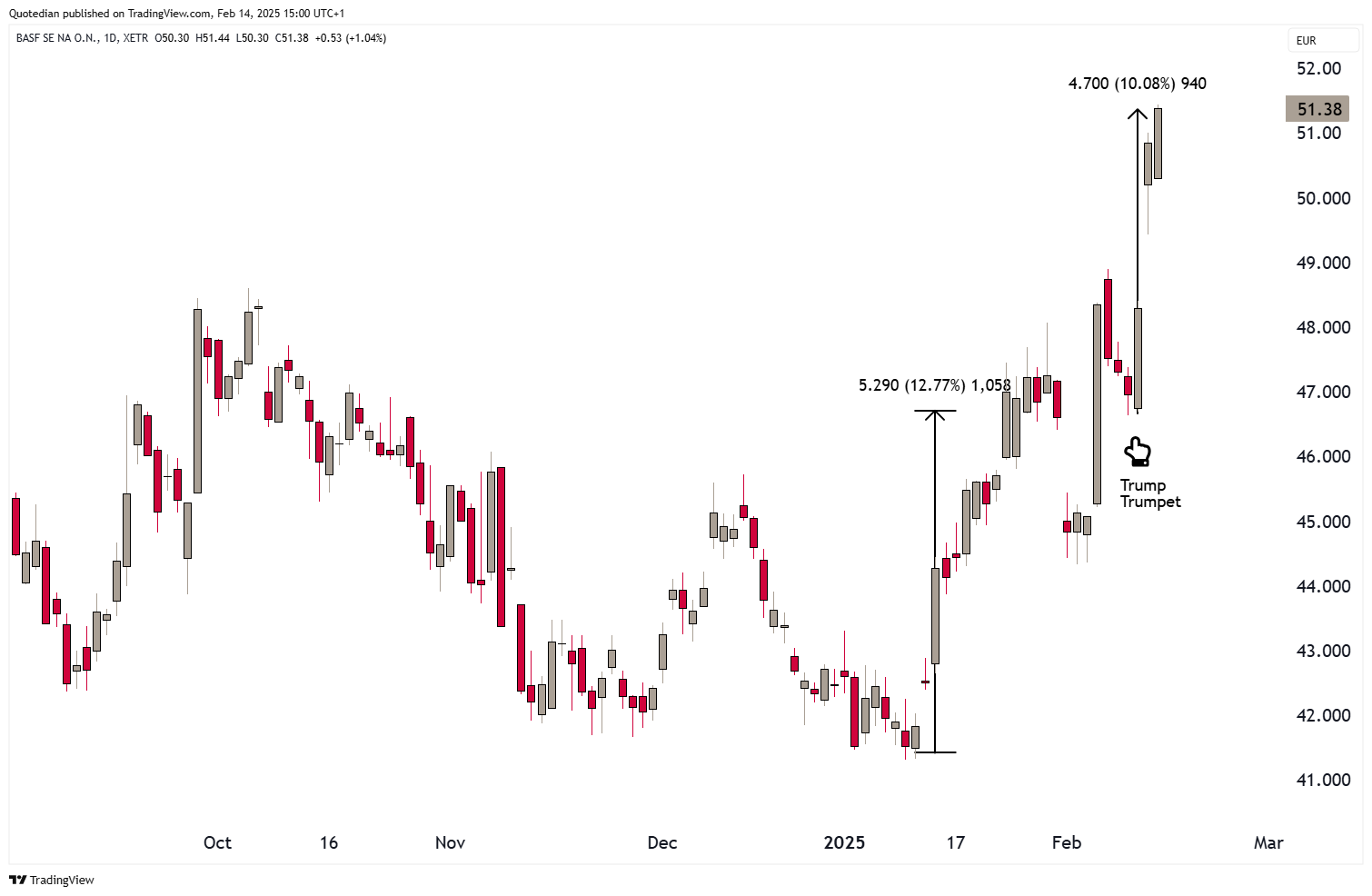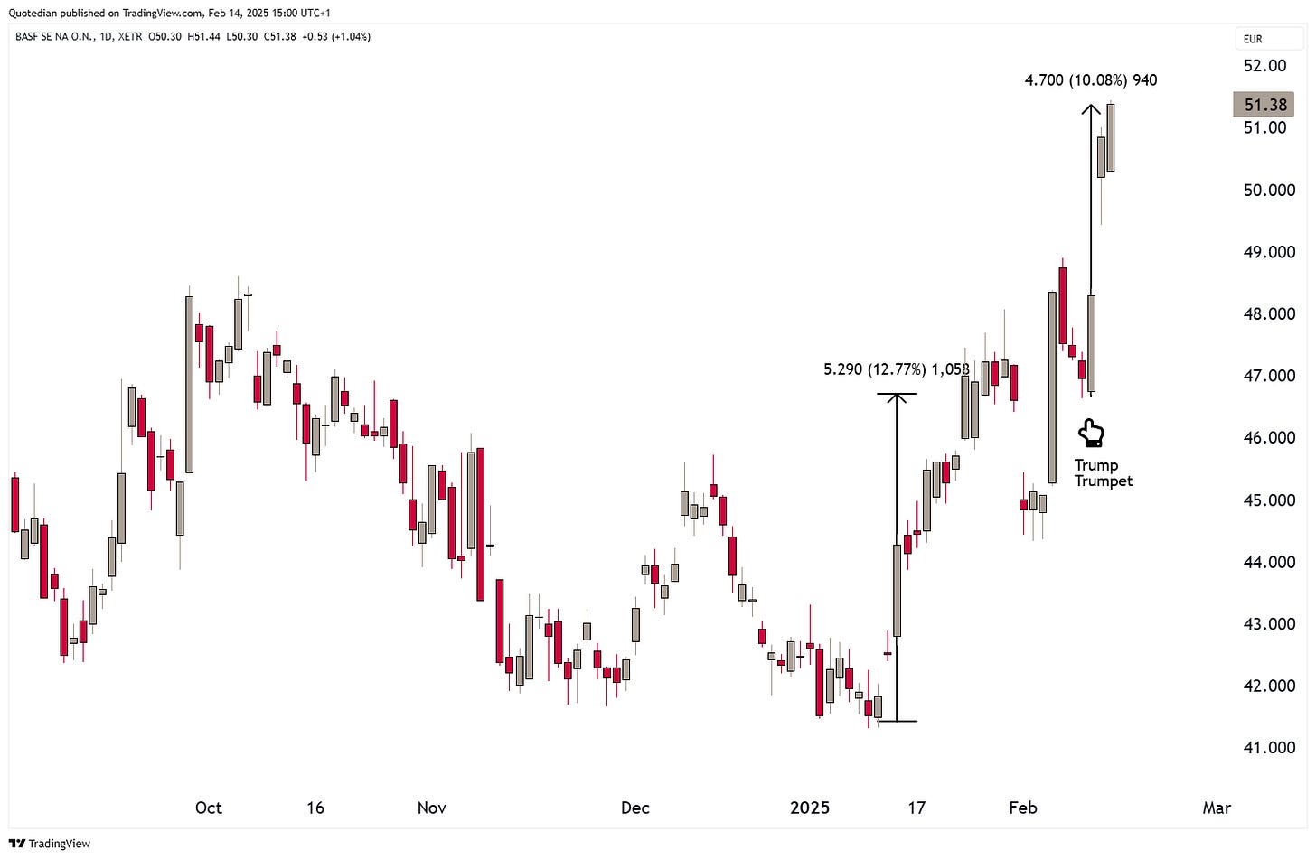 Up 10% since TT (Trump Trumpet), but, and it is a BIG BUT, up already 13% before that since mid-January.