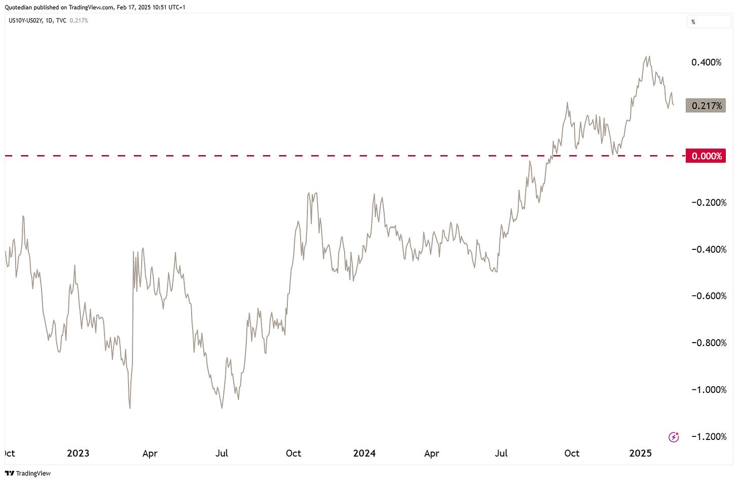This is also indicated by a further steeping of the yield curve (10y-2y):