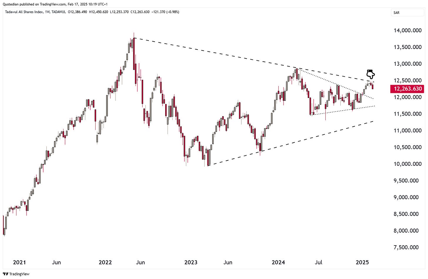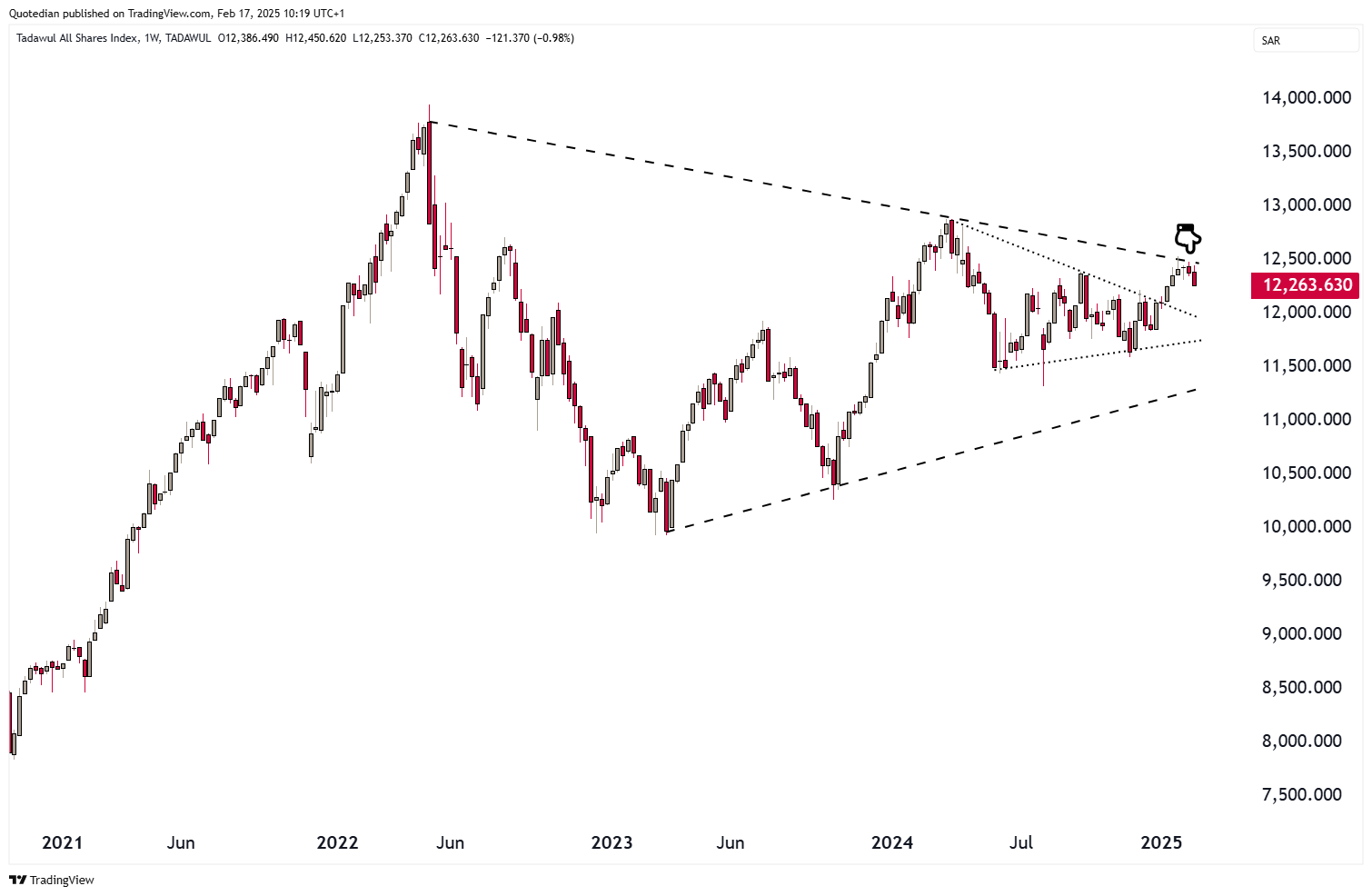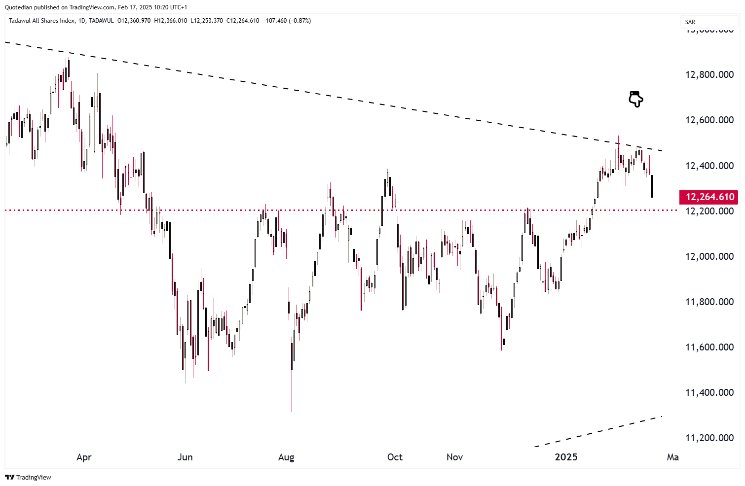 Finally, Saudi Arabia’s Tadawul All-Share index has for now been rejected at a major resistance point: