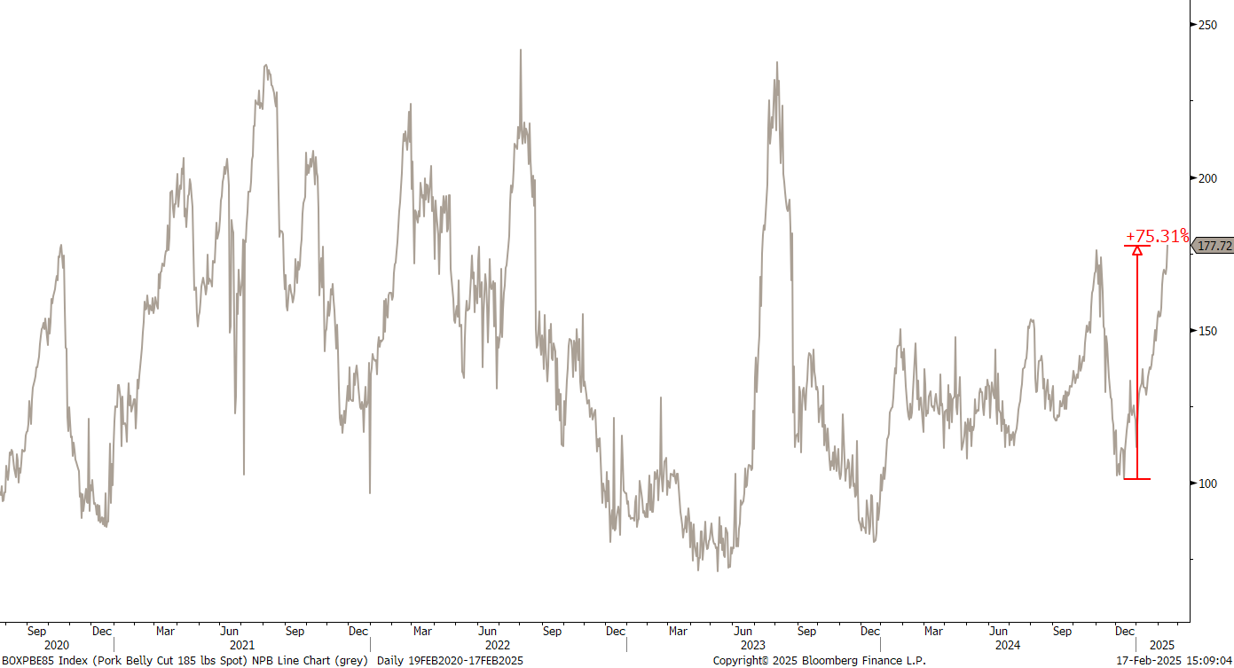 which in turn has led to a 75% increase in the price of Boxed Pork Belly Cut 200lbs: