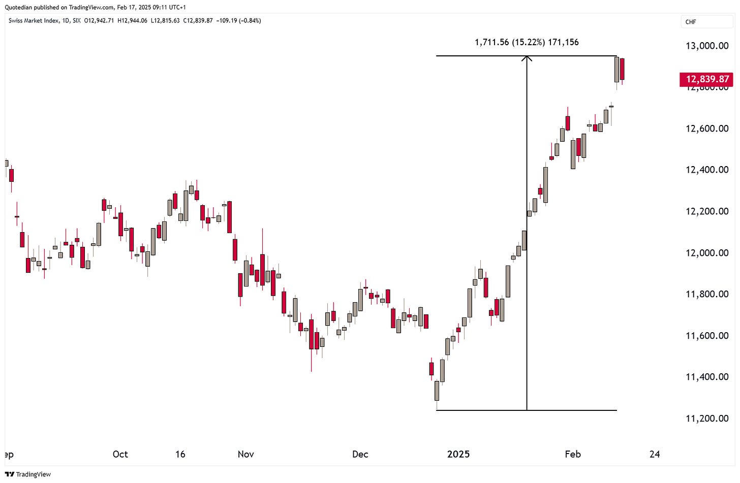 Switzerland’s SMI (finally) also had an awesome rally since that omnious Friday 20th, December: