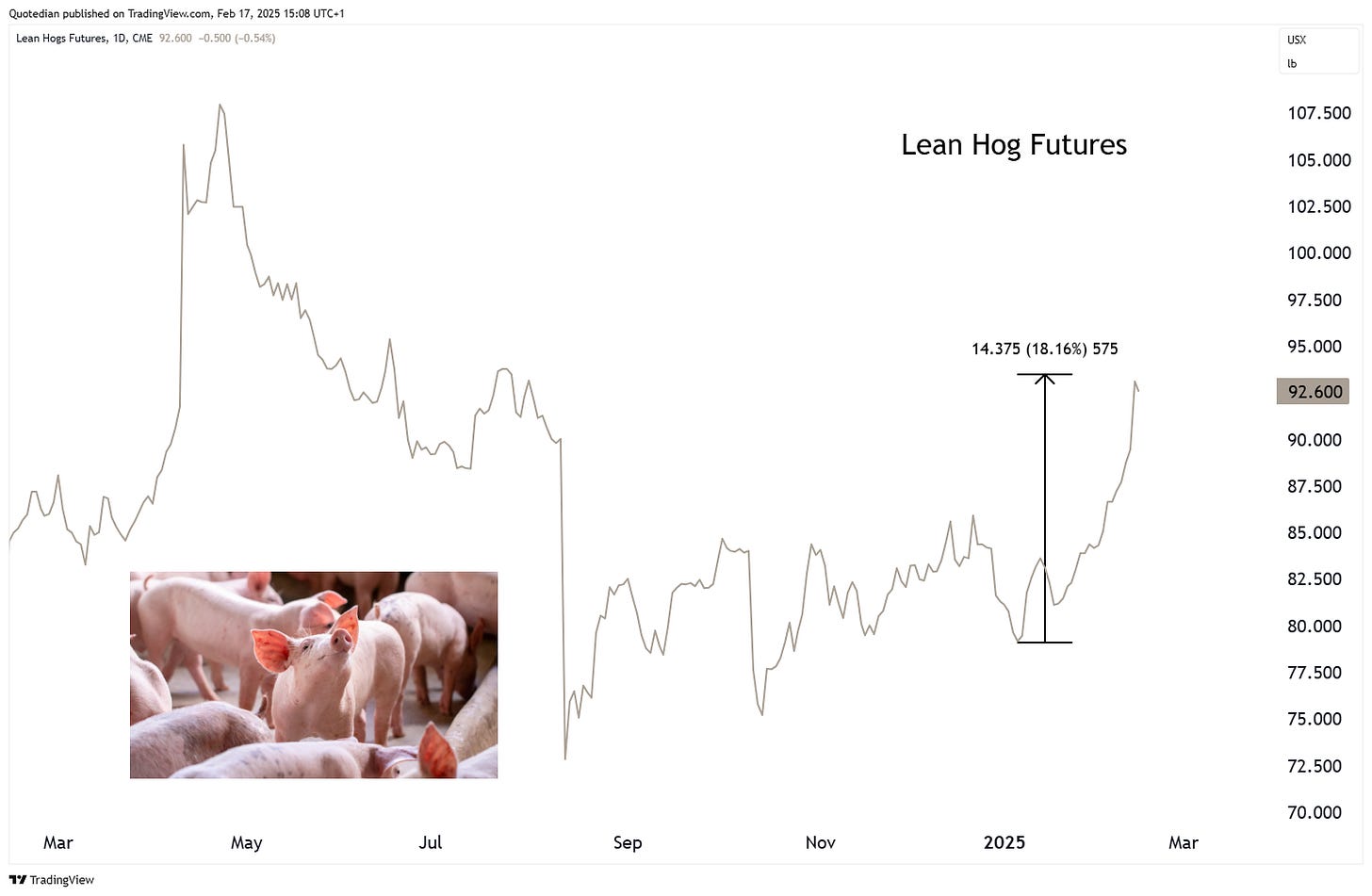 Lean hog futures are up 20% since the beginning of the year,