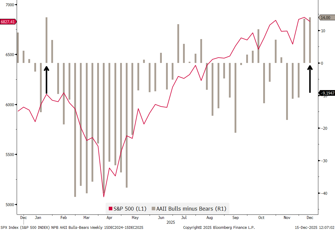 Did the (retail) crowd get too excited (read: bullish) post the new ATH in S&P 500? Perhaps. Our AAII Bull-Minus bear indicator shows the high ratio since early January of this year: