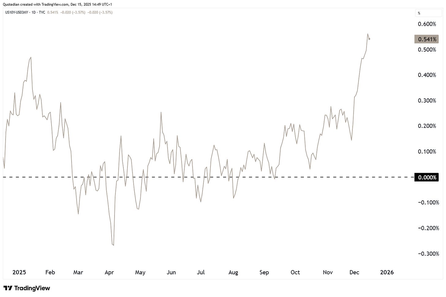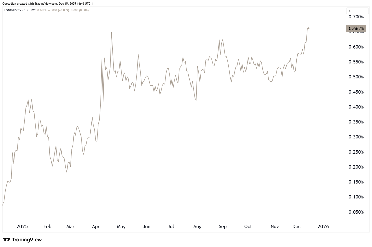 Also, unsurprisingly, has the yield curve (10y-2y) steepening,