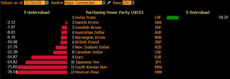 And this whilst the US Dollar continues to be very expensive (only to be beaten by the Swiss Franc), even after this year’s 10%-plus decline: