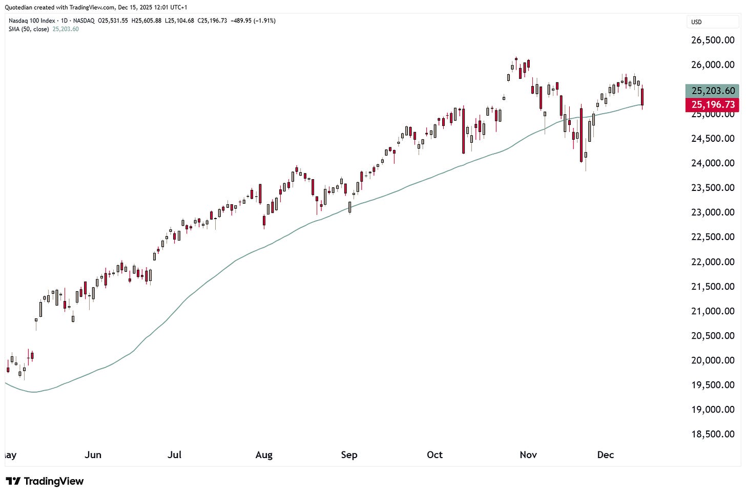 The Nasdaq-100 got harder hit on Friday and did not achieve making a new ATH last week. Quite “au contraire” is the index sitting on top of the 50-day moving average already again: