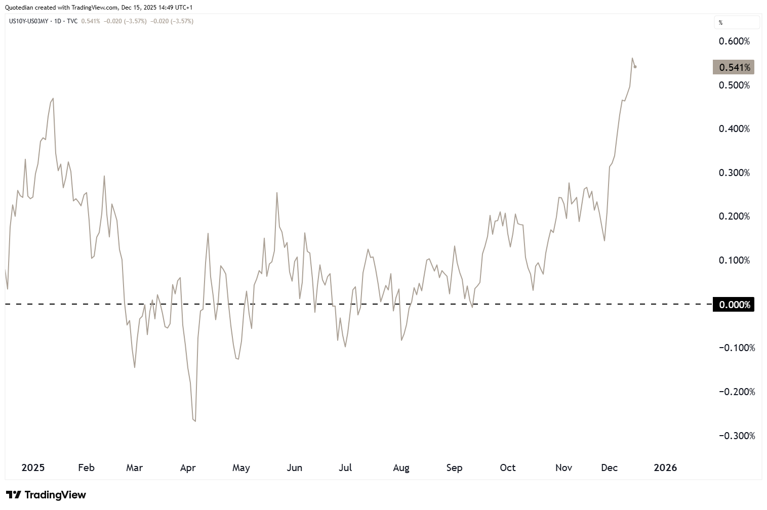 but the impact of the very lose monetary policy is even better visible in the steepening of the 10-year minus the 3-month bill: