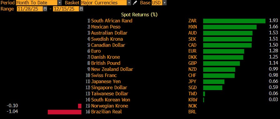 Since beginning of the month, the Dollar has fallen against nearly all other major currencies: